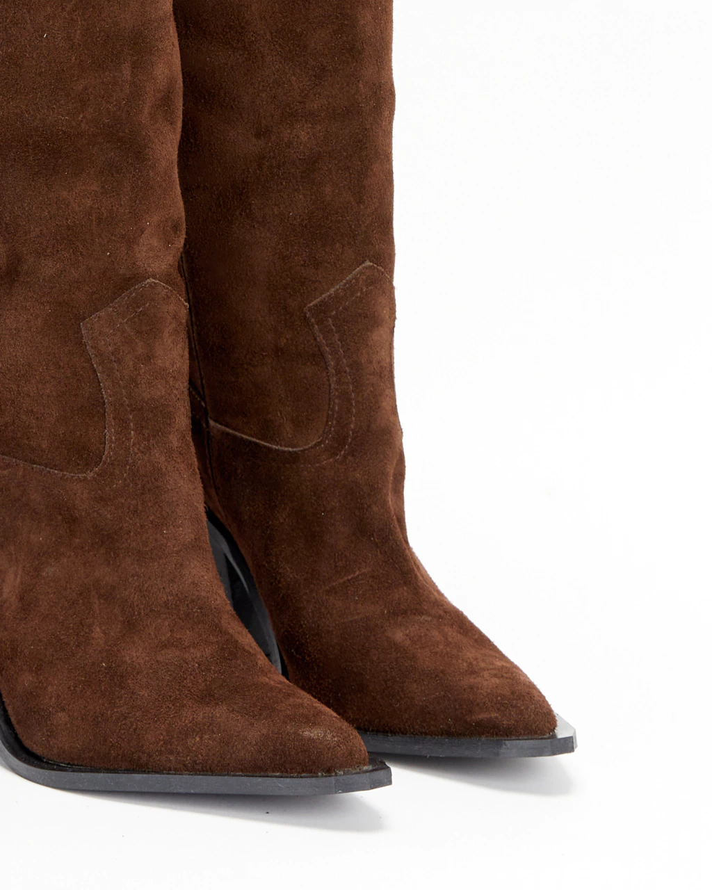 Bota confeccionada en cuero gamuzado, su forreria interna también es vacuna.