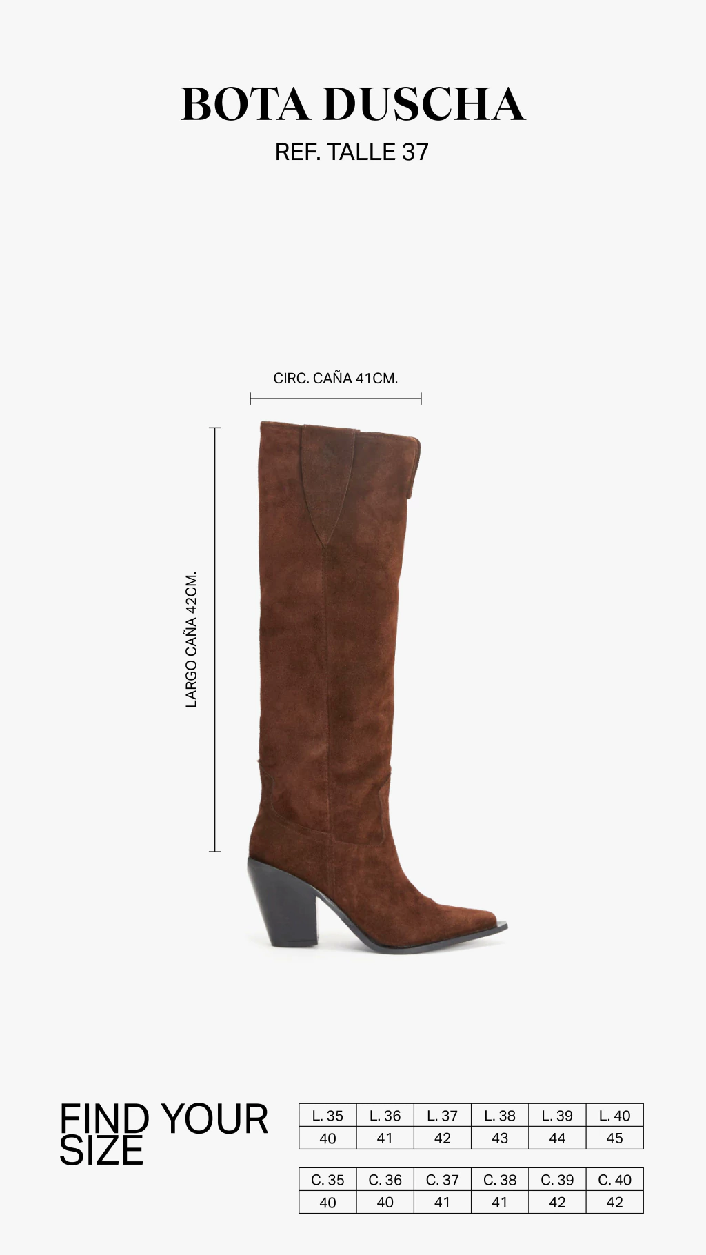 El modelo Duscha es una bota de calce directo, no lleva cierre lateral. Cuenta con una plantilla entera de eva para mayor confort. El taco es foliado y antideslizante con una altura de 9 cm.