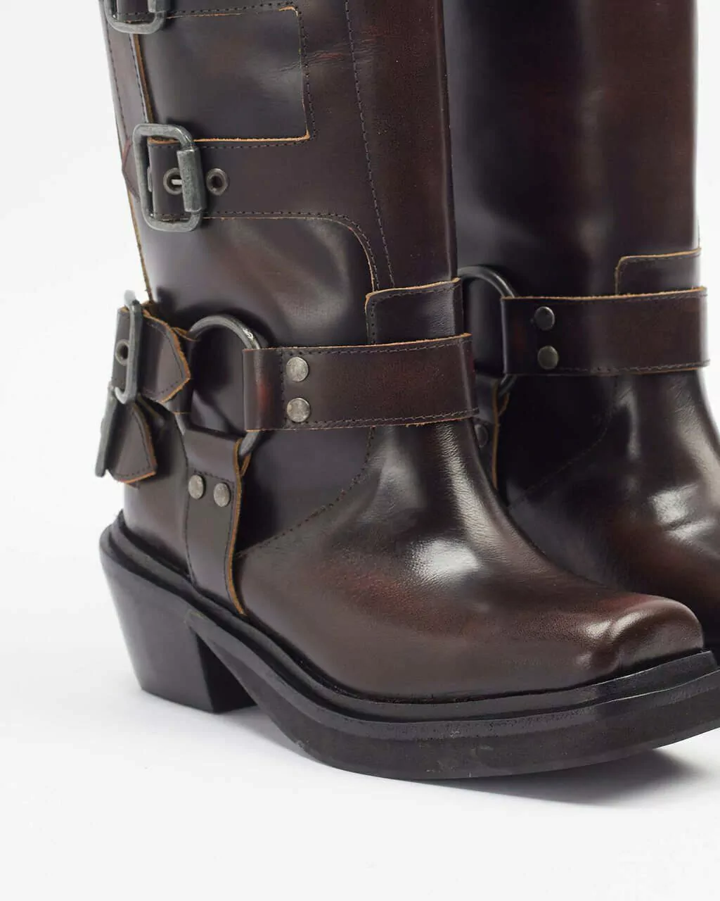 El modelo Eshe es una bota de calce directo, no lleva cierre lateral. Cuenta con una plantilla entera de eva para mayor confort. El taco es foliado y tiene 6 cm de altura. Este diseño cuenta con herrajes metálicos.