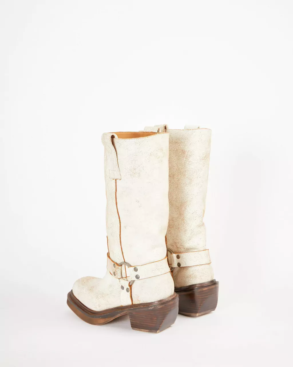 Bota confeccionada en cuero rustico con contrafondo camel, su forro interno también es vacuno.