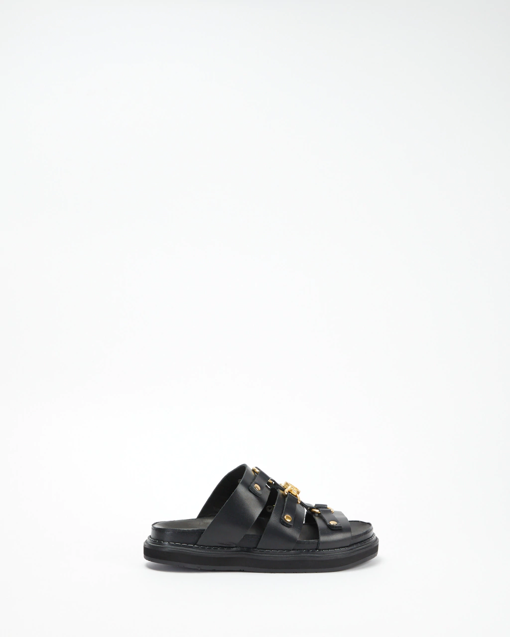 Sandalia confeccionada en cuero legitimo. Su forro interno tambien es vacuno.
