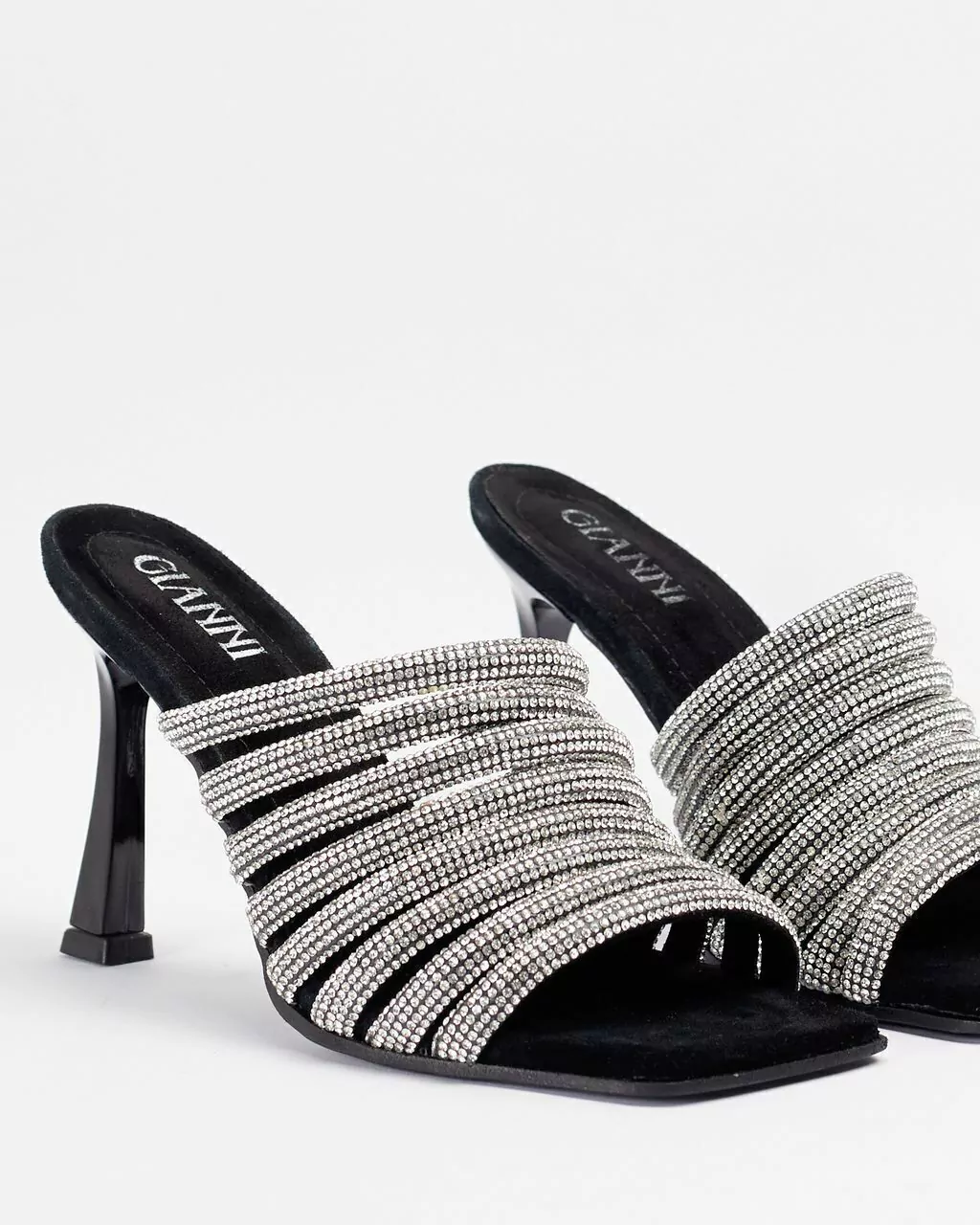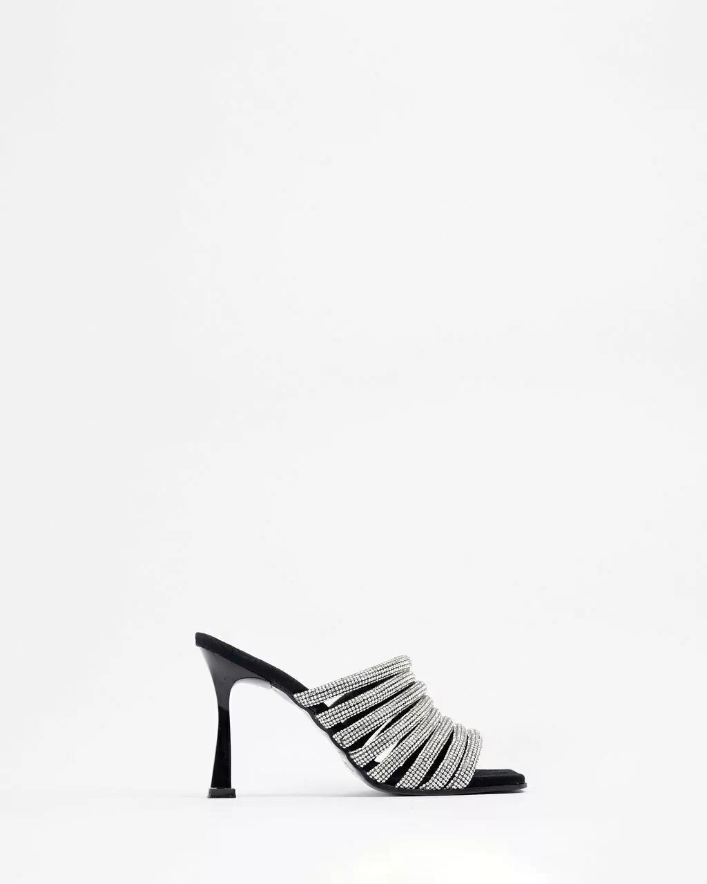 Sandalias confeccionadas 100% de forma artesanal con apliques de strass y cuero legitimo. Su plantilla está forrada en gamuza y su suelin tambien es vacuno. Taco de 8.5 cm.